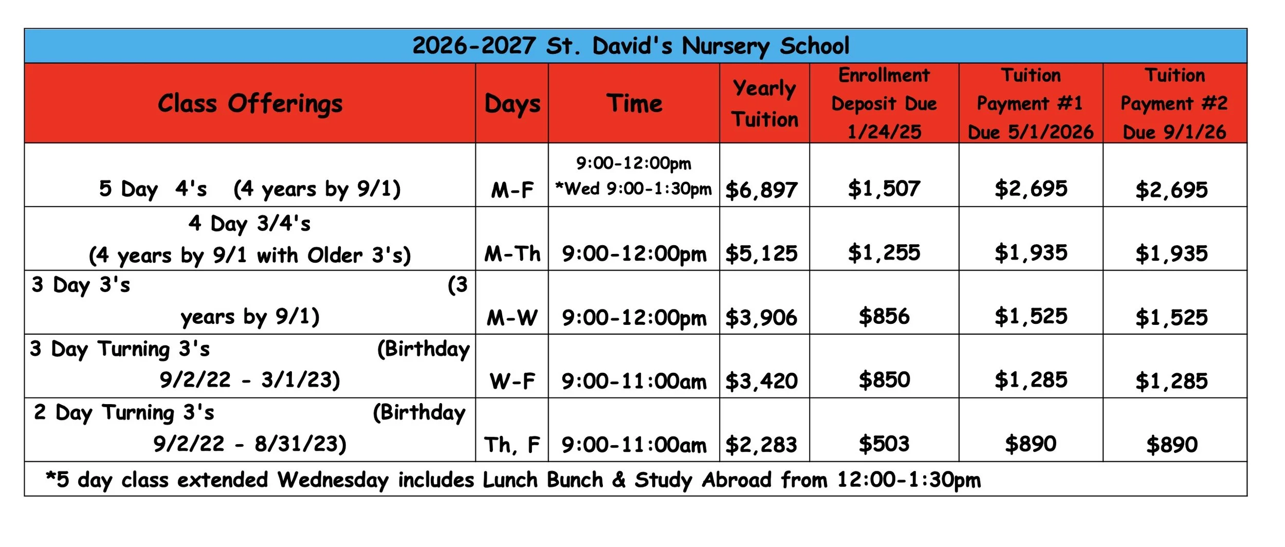 St. David’s is a traditional play-based preschool. We provide a warm and nurturing environment where children’s first friendships flourish, and learning through creative play and engaging experiences is a priority.